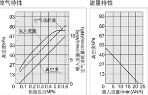 排气特性/流量特性图标(供给压力在0.45MPa的情况下)